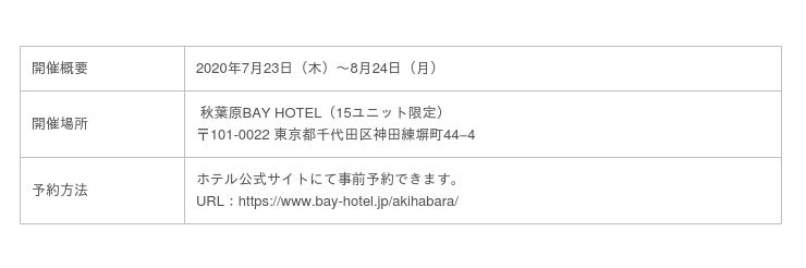 株式会社サイバード(本社:東京都渋谷区、代表取締役社長 兼 CEO 本島 匡、以下「サイバード」)が手掛ける累計会員数3,000万人を誇る女性向け恋愛ゲーム「イケメンシリーズ」の人気タイトル『イケメンヴァンパイア◆偉人たちと恋の誘惑』は、リリース3周年を記念して女性専用カプセルホテル「秋葉原BAY HOTEL」とのコラボレーションを、2020年7月23日(木)から8月24日(月)の期間限定で実施します。本日6月19日(金)19時より予約受付が開始いたしました。