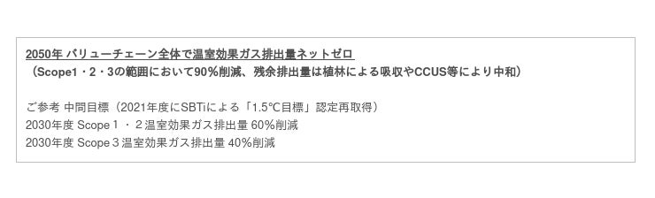 具体的には、省エネの徹底や店舗の再生可能エネルギー切り替え拡大等によるScope1・2温室 効果ガス排出量削減、お取引先様やお客様との協働によるScope3温室効果ガス排出量削減に取り 組むとともに、3R※2強化やサーキュラー型ビジネスの拡大等の取り組みを推進していきます。