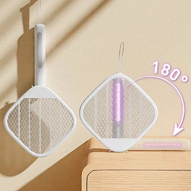 また、就寝時には持ち手を180°回転させると蚊取りライトに早変わり、蚊などの虫をおびき寄せて撃退するので、就寝中も安心。