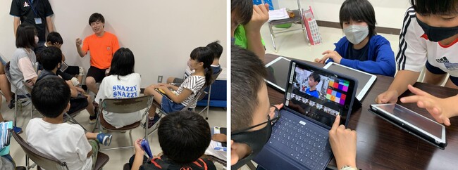 インフルエンサーの「竜さん」とフリーディレクターの「本田さん」に教えてもらいながら、動画編集に取り組みました。普段の授業でも動画編集をよくするという子ども達。教える前から手際よく編集をはじめていました。ですが、その上を行くプロのインフルエンサー竜さんと本田ディレクター。どうすると、楽しく分かりやすく最後まで見てもらえるのかを考え、それを映像化する技を学びました。