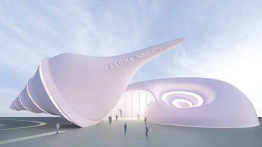 ▲アンモナイトの形をしたパビリオン「PASONA NATUREVERSE」