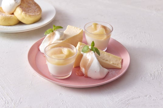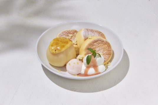 更に、今年度はまるごとの白桃の上に、こだわりの自家製レモンカスタードを香ばしくブリュレし、白桃ソルベとレモンチョコクランチの酸味と食感がアクセントになった“奇跡のパンケーキ まるごと白桃レモンブリュレ”の2種類を楽しんでいただけます。