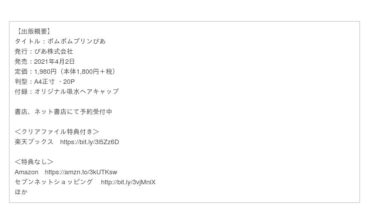 4月2日、ぴあ株式会社より、『ポムポムプリンぴあ』を発売することが決定となりました。