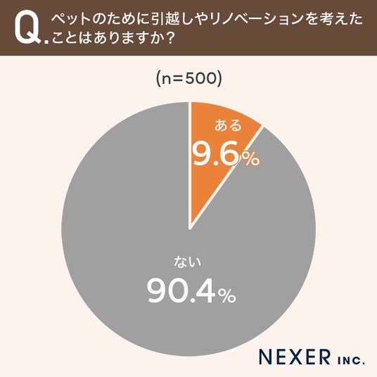 9.6%と1割近くの方が、ペットのために引越しやリノベーションを考えたことが「ある」と回答しています。
