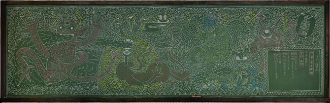 黒板アート作品「吉祥 ~宵の宴」。吉本興業の110周年を記念し、新宿本社ロビーの黒板に描かれた