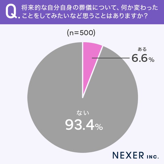 6.6%の方が自分自身の葬儀について、何か変わったことをしてみたいなど思うことが「ある」と回答しています。