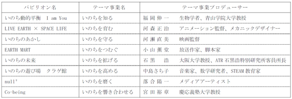 ■パビリオン名及びテーマ事業名、テーマ事業プロデューサー(8名)