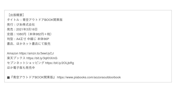 ■『青空アウトドアBOOK関東版』 https://www.piabooks.com/aozoraoutdoorbook