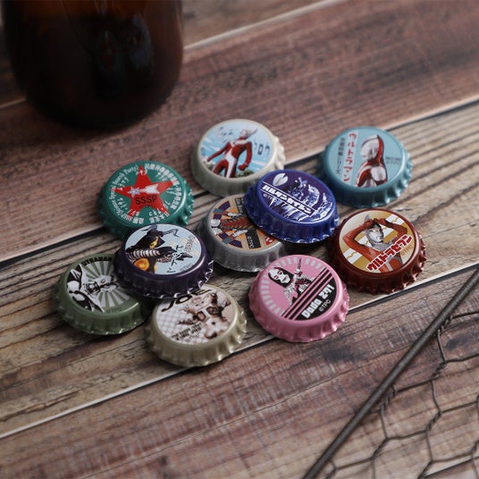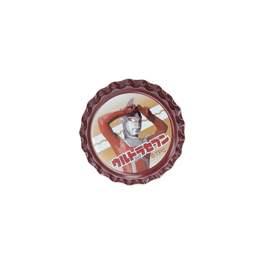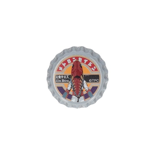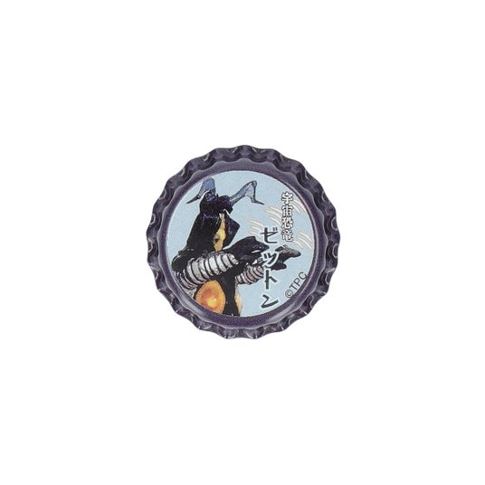 レトロな雰囲気を感じる、集めていた人にとっては懐かしい瓶の王冠をイメージしたピンバッジです。王冠をイメージした商品コンセプトに合わせた「ウルトラマンキング」や隊員の名前をデザインした「科学特捜隊マーク」など全10種のラインアップ。何が出るかはお楽しみのブラインドパッケージ仕様です。