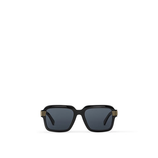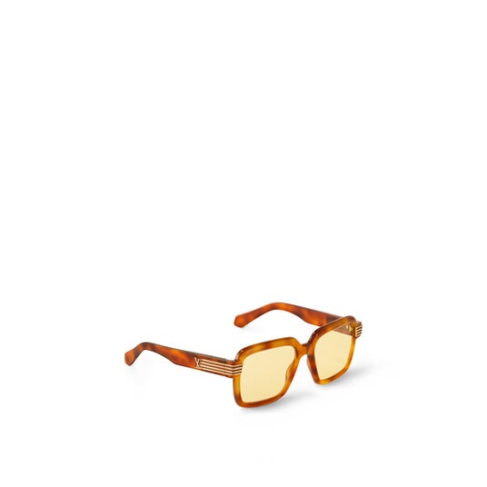 シャープなスクエアフレームと柔らかなラウンドシェイプが融合した、大胆なプロポーションの「サングラス・LV スライド ラージ スクエア ラウンド」。ブロウバーのサイドからテンプル周りへ伸び、LV シグネチャーへと収束するメタルストライプが、洗練されたアセテートフレームに雰囲気のある魅力を添えます。