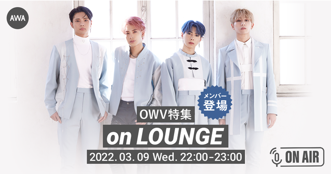 AWA株式会社(本社:東京都港区、代表取締役CEO:冨樫晃己)が運営する、サブスクリプション型(定額制)音楽ストリーミングサービス「AWA(アワ)」は、2022年3月9日(水) 22:00~23:00の1時間に渡り、オンライン空間「LOUNGE(ラウンジ)」で、OWVのメンバーが音声とチャットで参加する、ラジオ配信ラウンジを開催いたします。