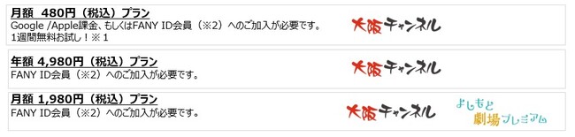 ※大阪チャンネルは吉本興業株式会社と株式会社NTT DOCOMOが共同で運営する映像配信サービスです。