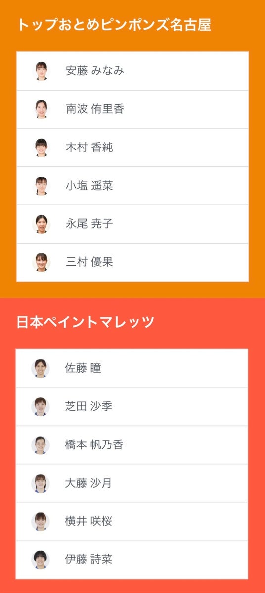 ノジマTリーグ 2024-2025シーズン 公式戦 11月30日開催 トップおとめピンポンズ名古屋 vs 日本ペイントマレッツ ベンチ入り選手を発表いたします。