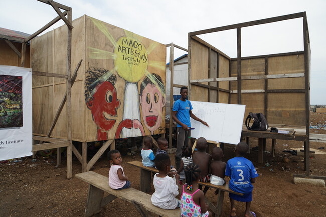 2018年に設立された、スラム初の学校「MAGO ART AND STUDY」。子供たちに英語、算数、アート、社会、環境問題を教えている。