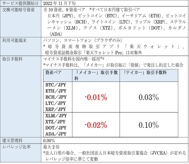 ※2:国内主要暗号資産関連金融商品取引業者のうち、取引所形式証拠金取引を提供する業者(FTX Japan、GMOコイン、bitFlyer、楽天ウォレット(五十音順))で比較(2022年10月26日、楽天ウォレット調べ)