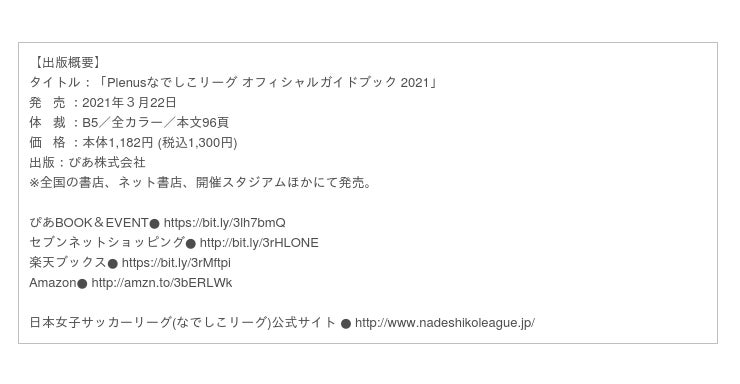 ■『Plenusなでしこリーグ オフィシャルガイドブック 2021』紹介 https://bit.ly/3lh7bmQ