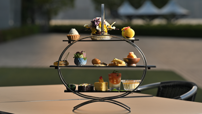 びわ湖まで遮るものがないプールサイドのテラス席で、イブニングハイティ―を堪能。
