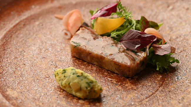 近江牛バラ肉の煮込みと野菜のテリーヌパセリ風味