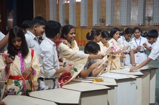 自作の浴衣で射的を楽しむ生徒 (C)Delhi Public School, Greater Noida