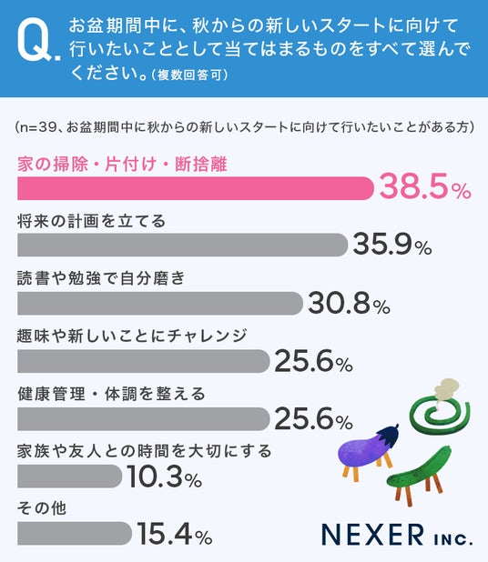 続いて、お盆の期間中、秋からの新しいスタートに向けて行いたいことがあるかを聞いてみました。