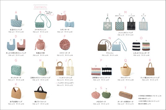小物の整理に役立つ巾着、ポーチなど、いくつも編みたくなる作品ばかりです。