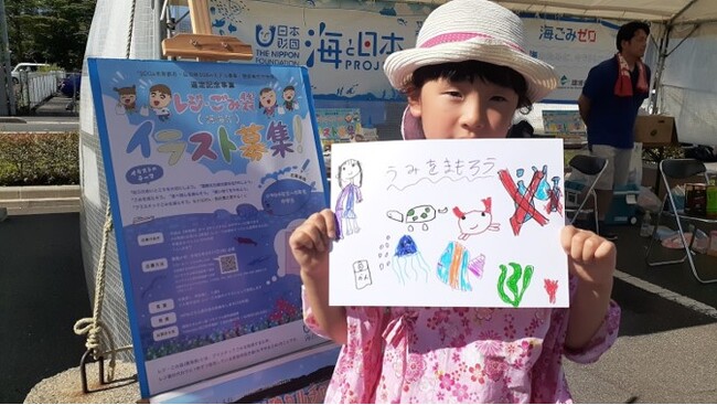 オリジナルのレジ・ごみ袋(護海袋)を制作するため、子どもたちからイラストを募りました。