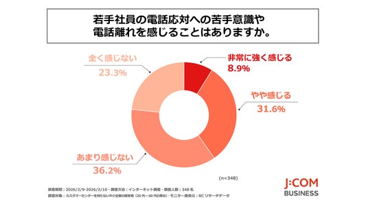 カスタマーセンターを持たない中小企業の経営者の4割以上が、若手社員の電話応対への苦手意識や電話離れを感じている