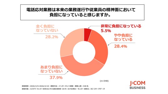 JCOM株式会社(本社:東京都千代田区、代表取締役社長:岩木 陽一)は、カスタマーセンターを持たない中小企業の経営者(20代~60代の男女)を対象に「中小企業の電話応対業務に関する調査」を実施しました。この調査から、カスタマーセンターを持たない中小企業の経営者が感じている電話応対業務の負担や人財不足、若手社員の電話離れの実態などが明らかになりました。
