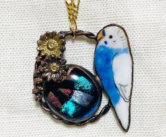 「七宝 花毬」 七宝焼とガラス セキセイインコお花ネックレス 6,600円