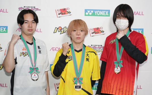 左から、準優勝・ゆわ選手(東京都)、優勝・海斗選手(大阪府)、第3位・ひろNa選手(長野県)