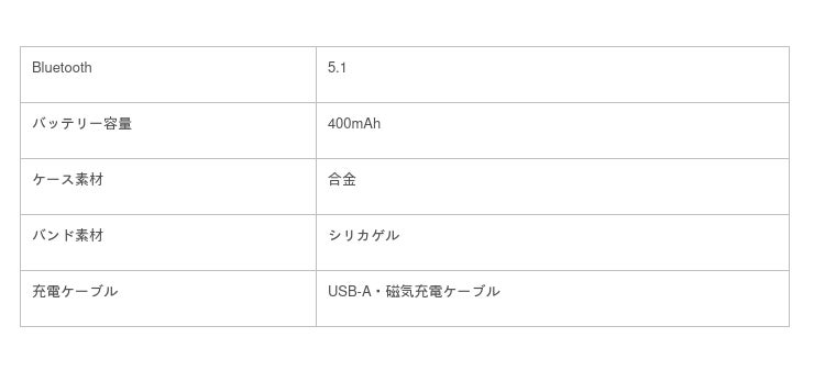 血中酸素/心拍数/睡眠状態/防塵防水IP68/400mAh/USB-A・磁気充電