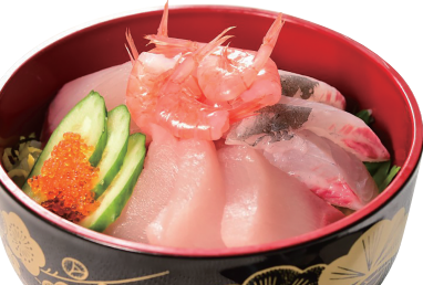 ねじめ黄金カンパチと、根占の漁場で育ったヒラマサ・ブリ。そして、錦江湾で取れたヒメ甘エビを使用した贅沢な丼ぶりとなっております。カンパチ、ヒラマサ、ブリは「ブリ御三家」と呼ばれています。カンパチ・ブリに比べるとヒラマサは漁獲量が少ないため三種を食べ比べる機会は滅多にない為、この機会に食べ比べて贅沢なひと時をお過ごしください。