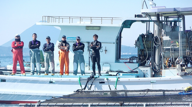 根占のカンパチは、黄金に輝いています。それは、独特の潮流と大切に育てた、身質のよい高品質のカンパチの証です。根占漁場は「地の利」を生かす漁業です。