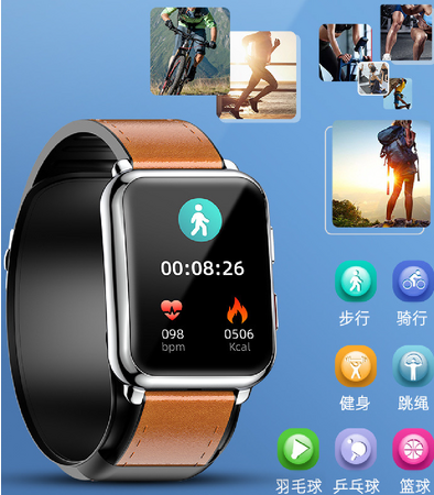 1.65インチ大画面/体温/血中酸素/心拍数/運動/IP65/USB-A・磁気充電