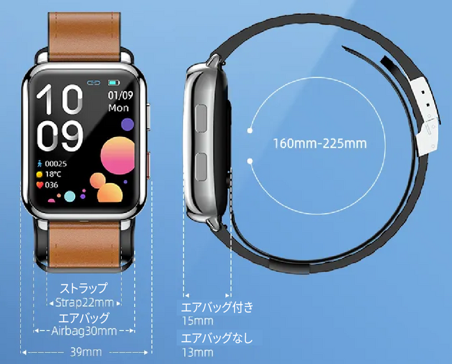 TPUエアバッグがついており、一般的な血圧計と同じ原理で測定してくれます。