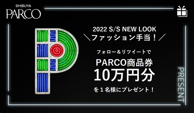 渋谷PARCO公式twitterアカウント(https://twitter.com/shibuya_parco)をフォローの上、対象のツイートに「いいね」した方の中から、抽選で1名様にPARCO商品券10万円分プレゼント。