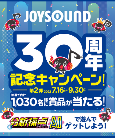1992年、通信カラオケとして業界で初めて発表された「JOYSOUND」も30周年。この機会をお見逃しなく、採点専用AIを搭載した新しい採点「分析採点AI」をお試しいただき、本キャンペーンに参加ください!