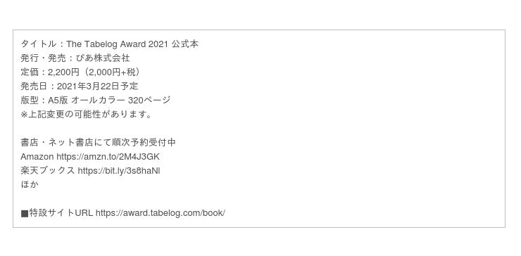 本日3月22日、ぴあ株式会社より、『The Tabelog Award 2021 公式本』が発売となりました。