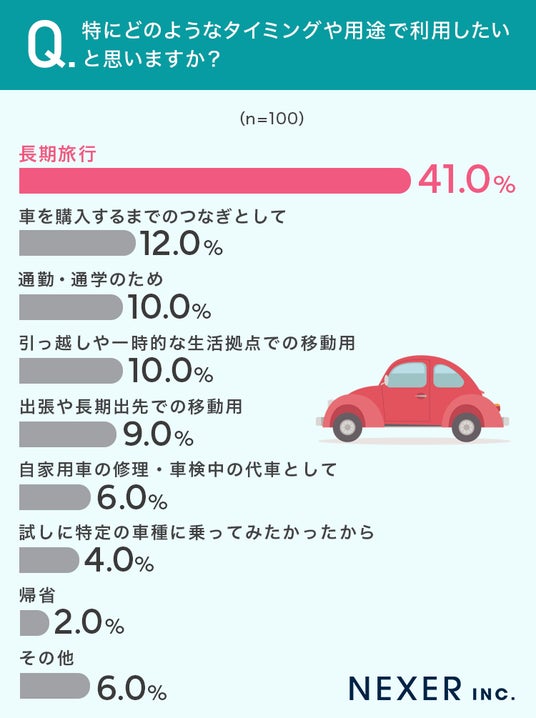 まずは、どのような用途で長期的にレンタカーしたいと思ったか聞いてみました。