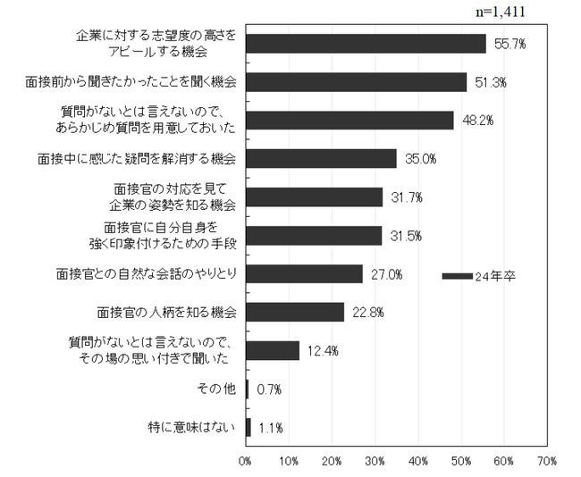 面接官に逆質問をしたことがある学生は86.5%。逆質問を「企業に対する志望度の高さをアピールする機会」と考える学生が55.7%で最多【図3、4、5】