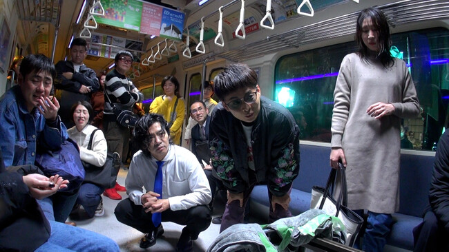撮影は和やかなムードで順調であったものの、大きな揺れと共に小銭が飛び交う電車内で、野田クリスタルとバイク川崎バイク、エキストラの乗客が崩れ落ちるシーンは、全てのタイミングを合わせる難易度が高いもので20テイクも撮り直すことに。