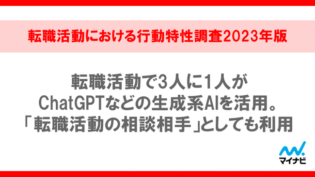 転職活動で3人に1人がChatGPTなどの生成系AIを活用。「転職活動の相談相手」としても利用。生成系AIを活用した人は、活用しなかった人に比べ内定獲得率・社数ともに2倍以上高い結果に