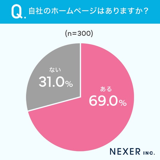 会社に勤めている方のうち、69%が自社のホームページがあると答えています。