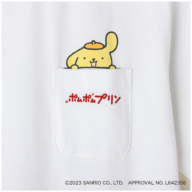 ポケットからちょこんと顔を出すポムポムプリンのオリジナルTシャツ