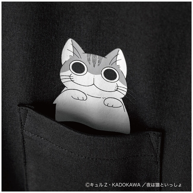 『夜は猫といっしょ キュルガ ポケットTシャツ』https://tkj.jp/book/?cd=TD690281