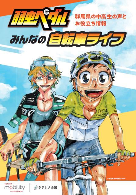 連携施策の第一弾として、群馬県内の高校生に寄贈する「自転車利用ルールを学べるガイドブック」が発表されました。ガイドブックは、A4サイズ全12ページにわたって楽しみながら学べるよう工夫されており、各ページには、大人気ロードレース漫画『弱虫ペダル(※2)』(著:渡辺航/「週刊少年チャンピオン」秋田書店)のキャラクターが登場し、若い世代にも親しみやすい内容となっています。2025年5月下旬より群馬県内のすべての高校生に寄贈されます。
