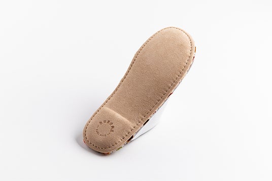 敢えて定番デザインをつくらず、全てのインソールの柄取りが異なる一点物として製作されています。今回は、その中から、家庭画報ドットコム会員の皆様に相応しい色柄をセレクト。世界に一つだけのスリッパをお楽しみください。
