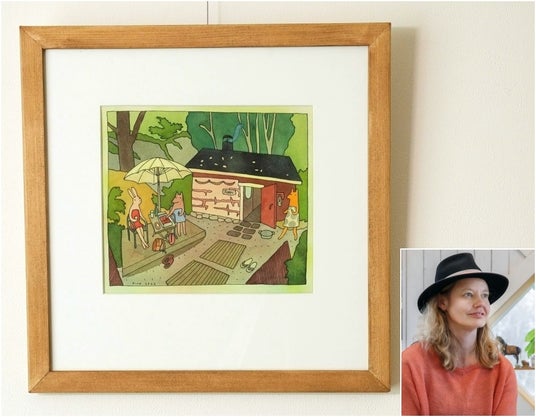 フィンランドのサウナを描く注目のアーティスト ピヴェ・トイヴォネン、日本で絵本出版や個展も開催するなど人気の絵本作家・イラストレーター アンネ・ヴァスコの原画やポストカード、フィンランド在住のテキスタイルデザイナー エリ シマツカのフィンランドの夏をイメージしたライラックの版画や手ぬぐいなど、イラストレーター4人のアートが登場します。