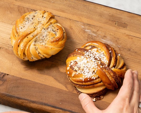 「ロビン・デルセリウス・バゲリ」(左)カルダモンロール(1個)540円、(右)シナモンロール(1個)540円 ◎催場