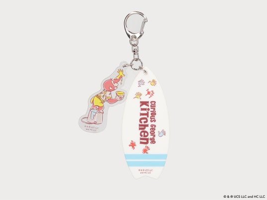 サーフボードにペンキをペタペタ、いたずらしているジョージがかわいいアクリルキーホルダー。